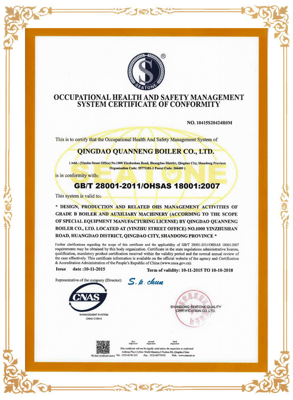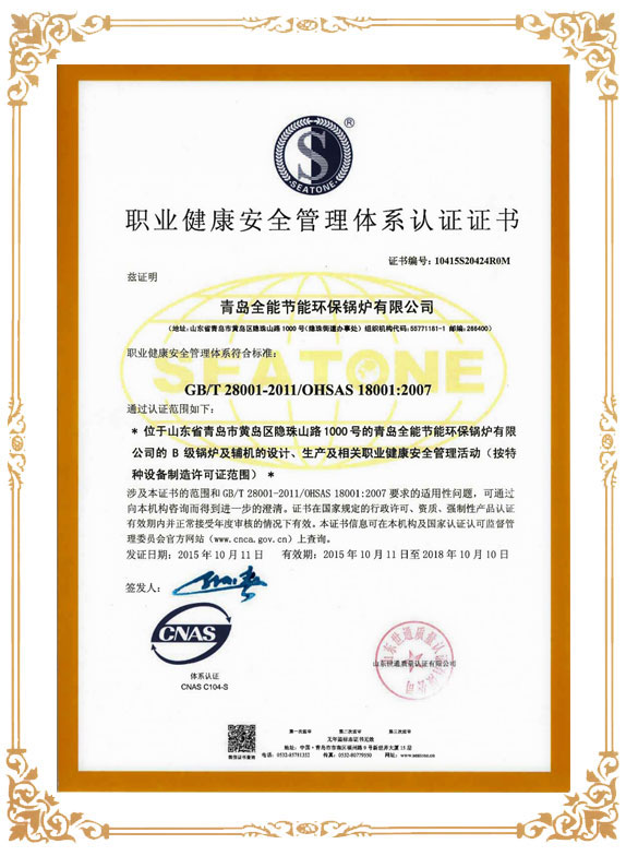 職業(yè)健康安全管理體系認(rèn)證英文證書