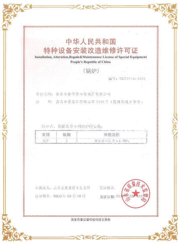 特種設(shè)備安裝改造維修許可證-鍋爐